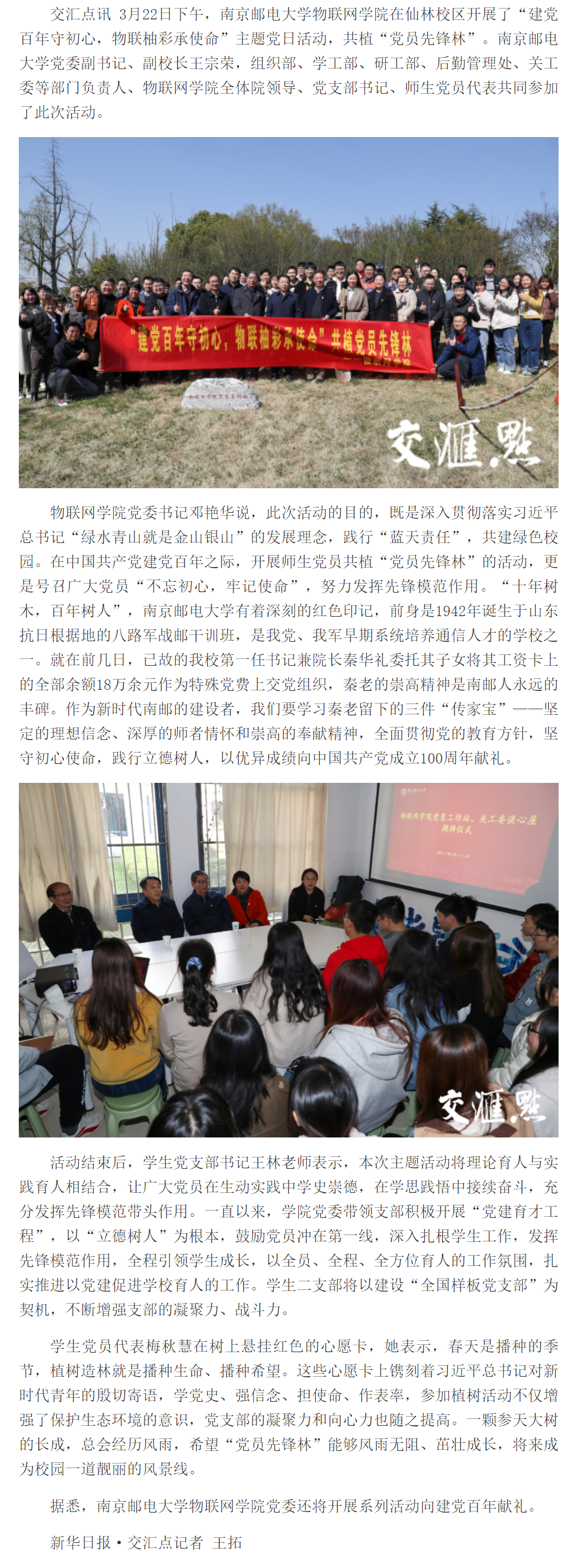 | 【新華日報客戶端】建黨百年守初心 | 南京郵電大學師生黨員共植“黨員先鋒林” |