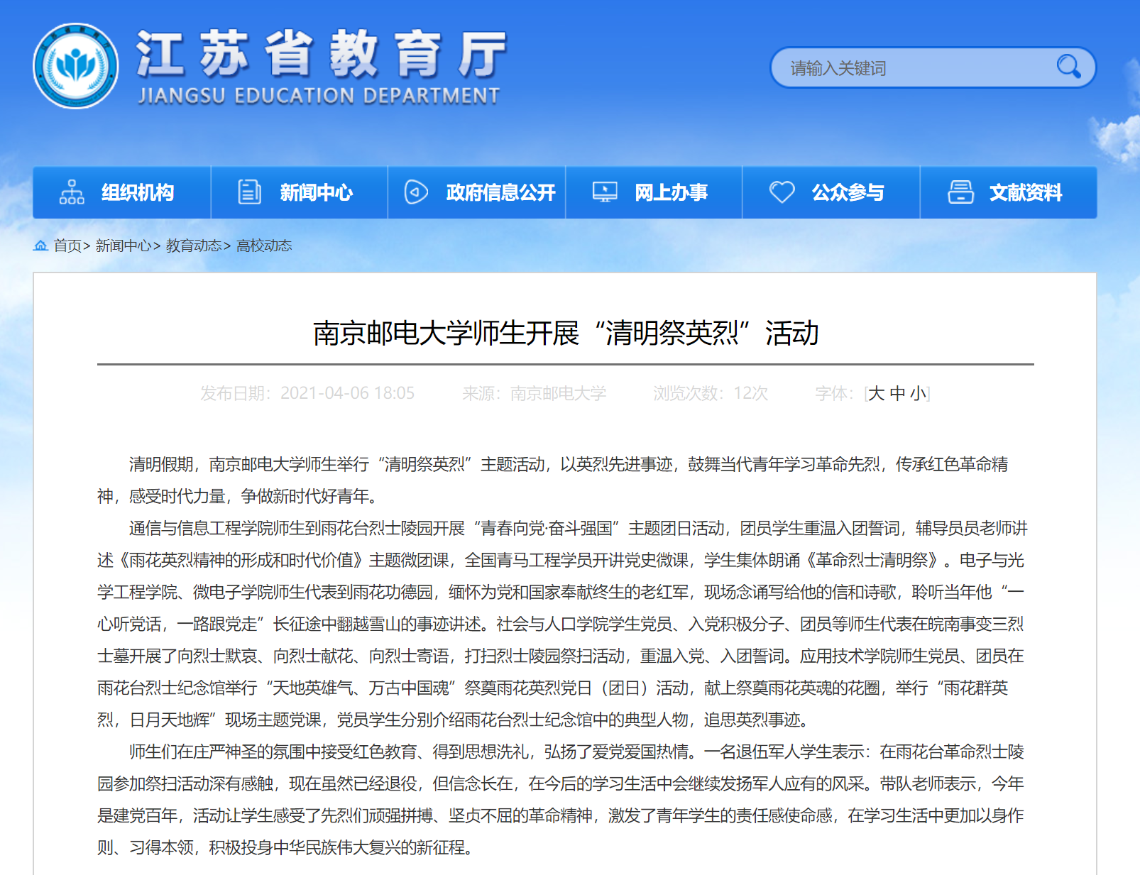 | 【省教育廳官網】南京郵電大學師生開展“清明祭英烈”活動 |