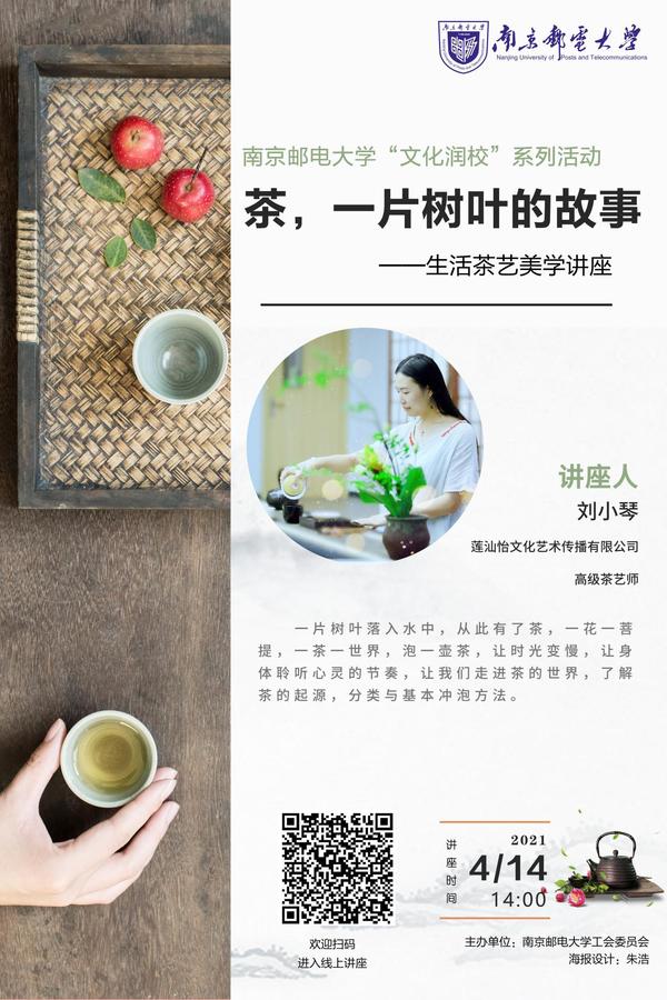 校工會將于202141414:00,舉行“茶,一片樹葉的故事——生活茶藝美學講座”。