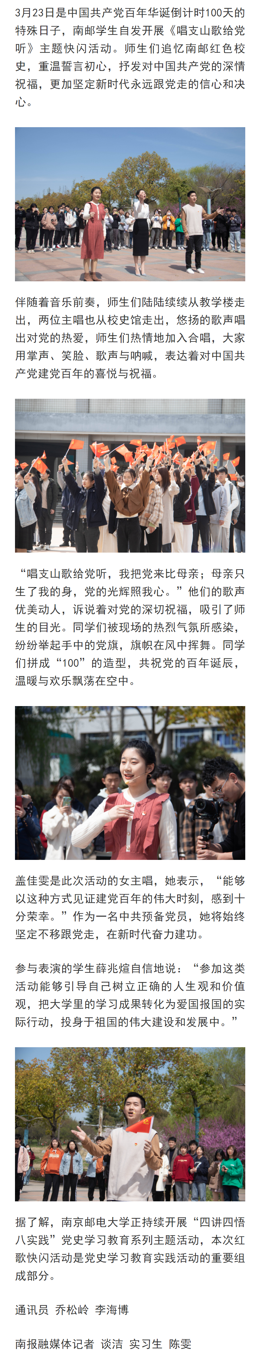 | 【南京日報客戶端】100年,100天!南郵學生唱支山歌給黨聽 |