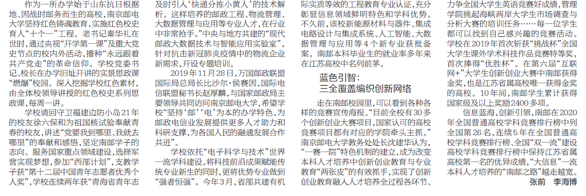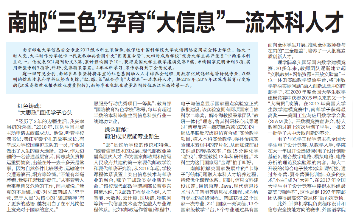 | 【新華日報】南郵“三色”孕育“大信息”一流本科人才 |