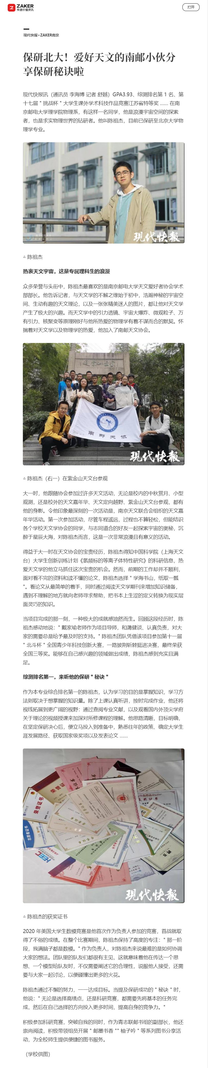 | 【現(xiàn)代快報(bào)全媒體】保研北大!愛(ài)好天文的南郵小伙分享保研秘訣啦 |