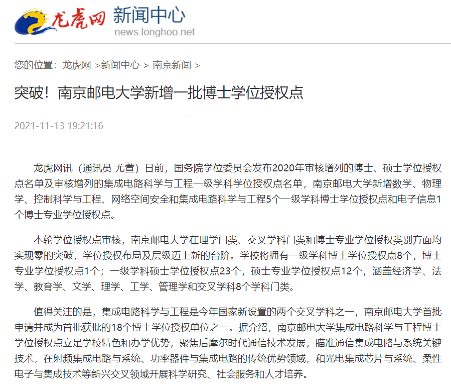 | 【龍虎網(wǎng)】突破!南京郵電大學(xué)新增一批博士學(xué)位授權(quán)點 |