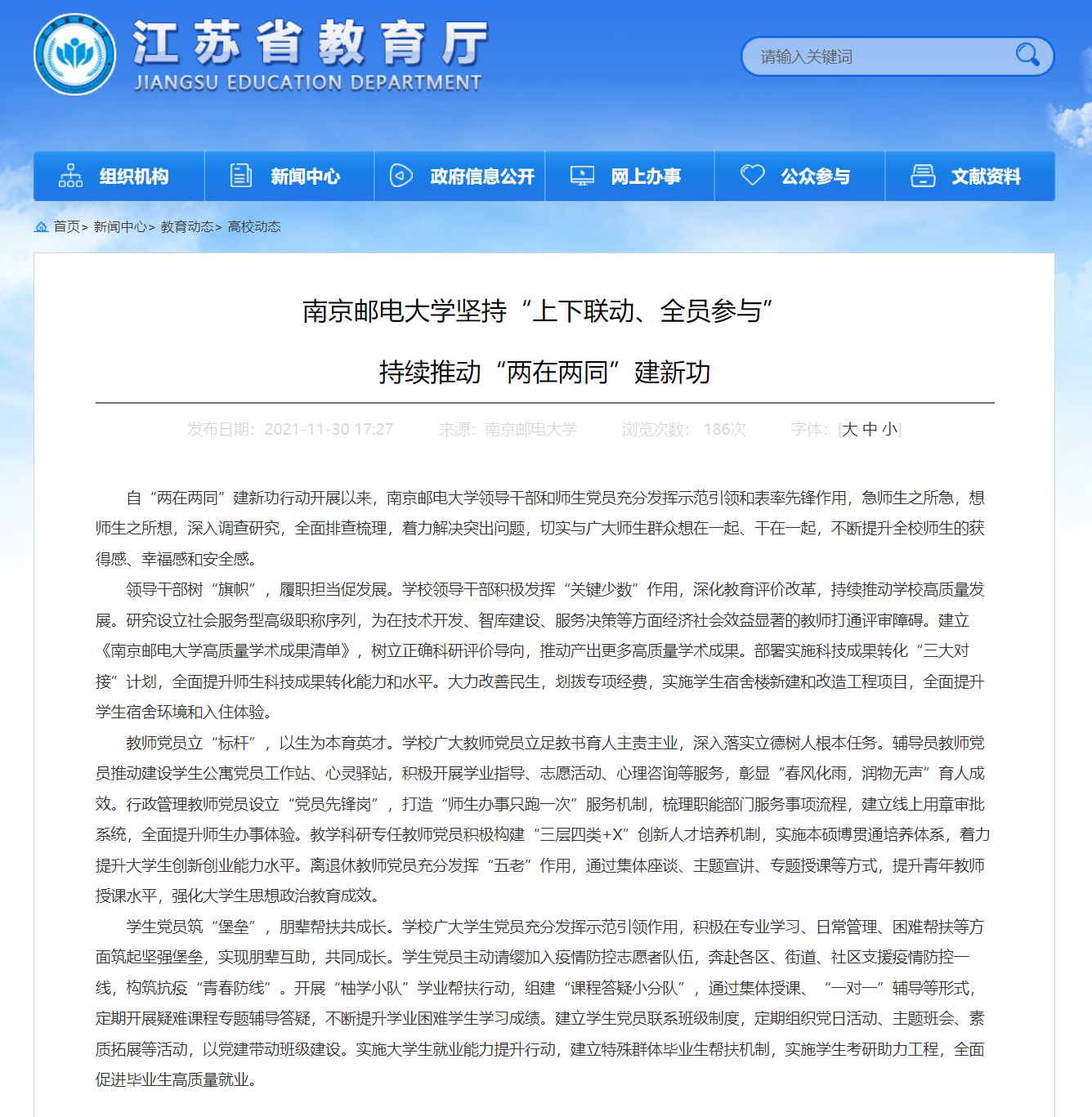 | 【省教育廳官網】南京郵電大學堅持“上下聯動、全員參與” 持續推動“兩在兩同”建新功 |