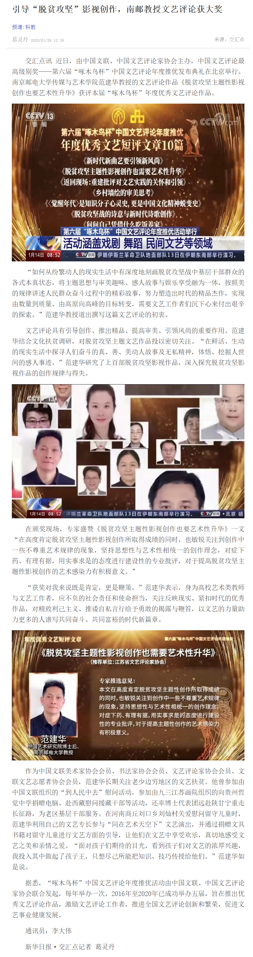 | 【新華日報客戶端】引導“脫貧攻堅”影視創作,南郵教授文藝評論獲大獎 |