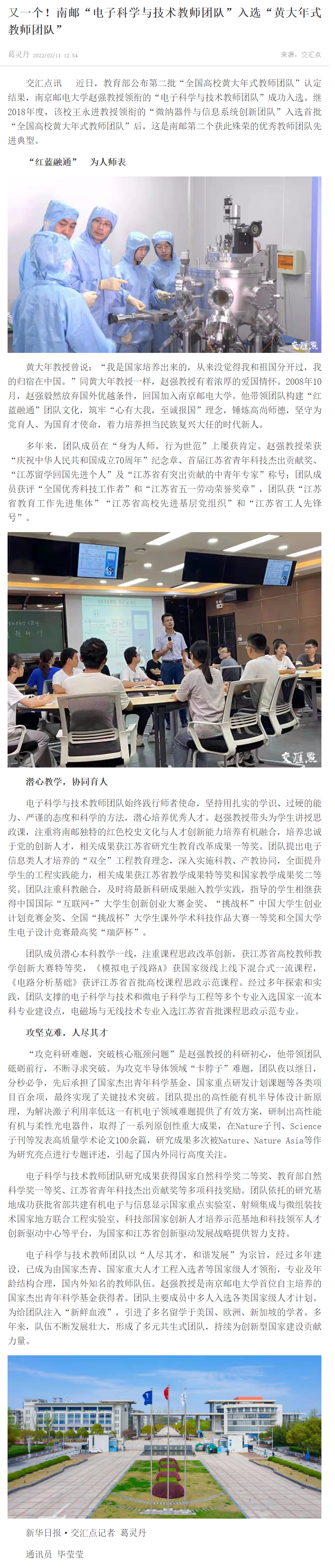 | 【新華日報客戶端】又一個!南郵“電子科學與技術教師團隊”入選“黃大年式教師團隊” |