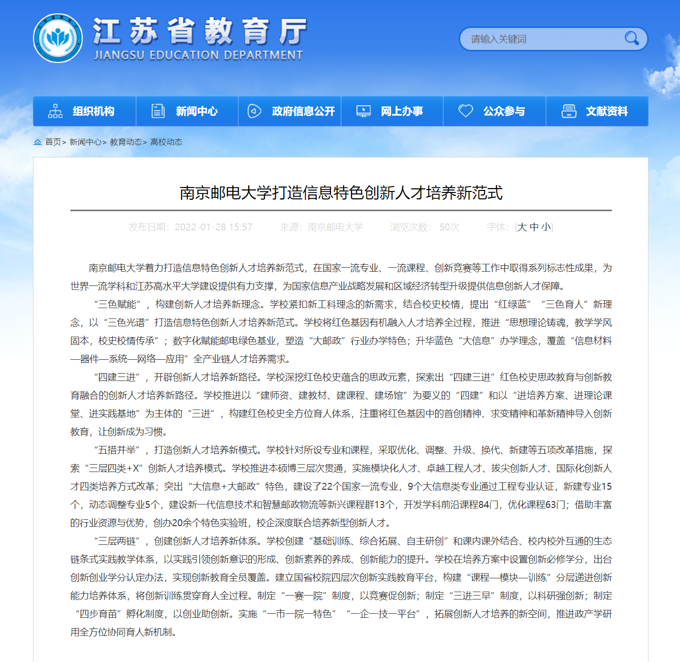 | 【省教育廳官網】南京郵電大學打造信息特色創新人才培養新范式 |