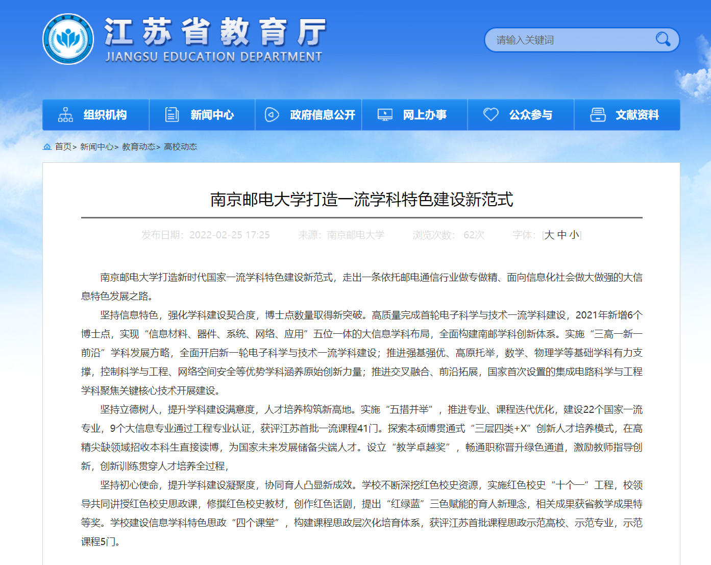 | 【省教育廳官網(wǎng)】南京郵電大學打造一流學科特色建設新范式 |
