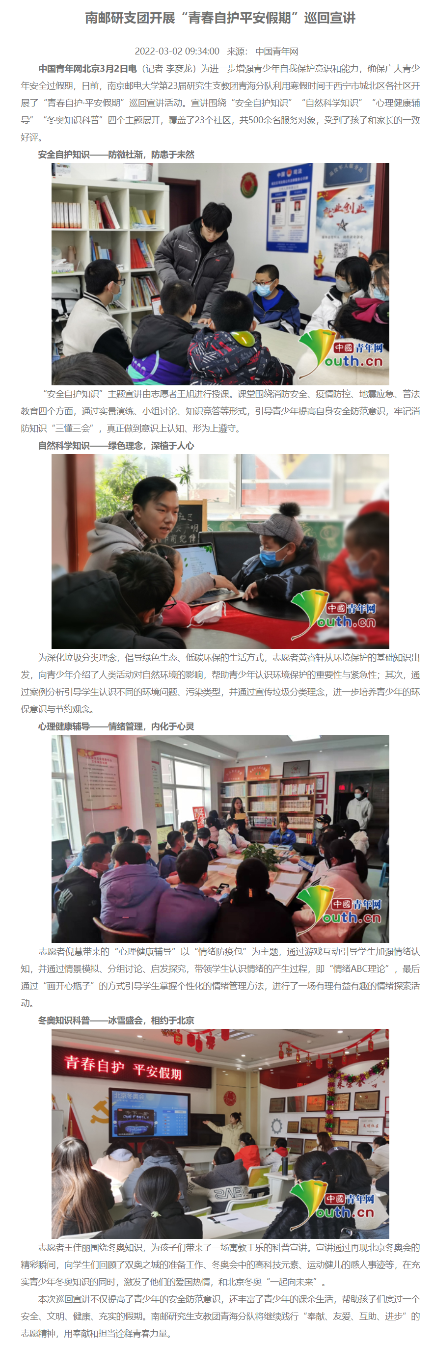 | 【中國青年網】南郵研支團開展“青春自護平安假期”巡回宣講 |
