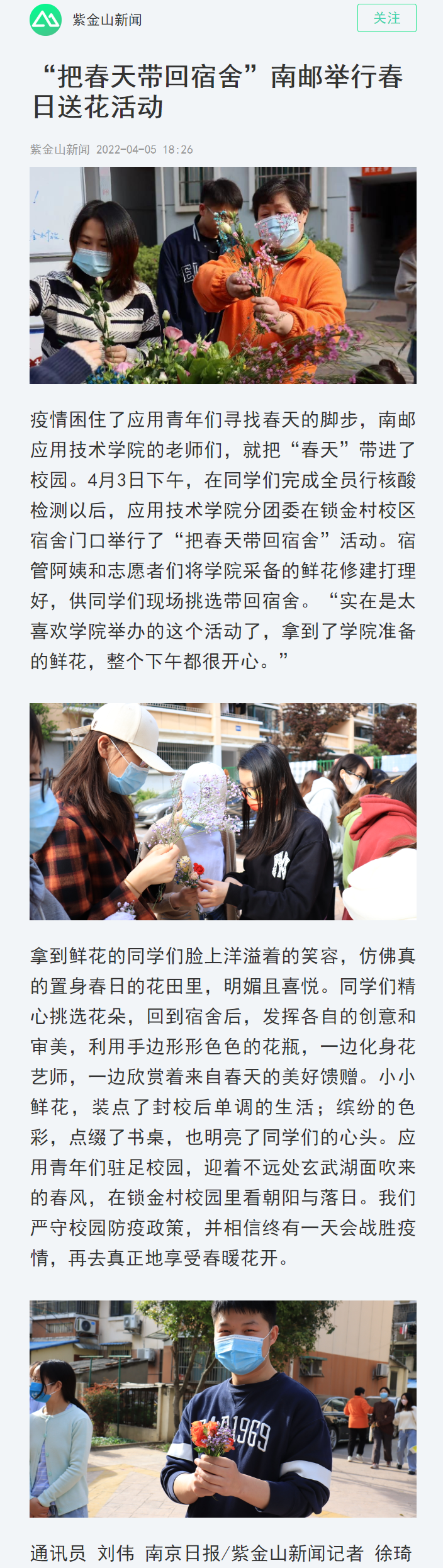 | 【南京日報客戶端】“把春天帶回宿舍”南郵舉行春日送花活動 |