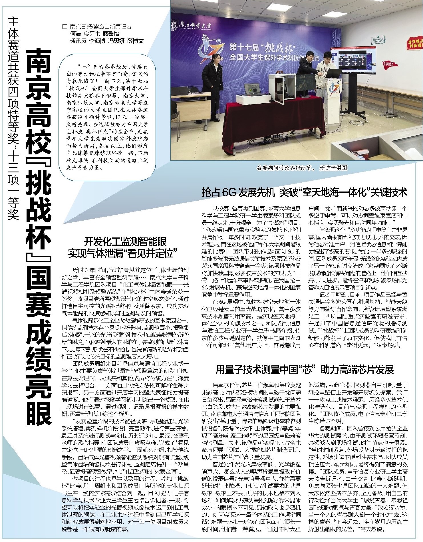| 【南京日報】主體賽道共獲四項特等獎,十三項一等獎 南京高校“挑戰杯”國賽成績亮眼 |