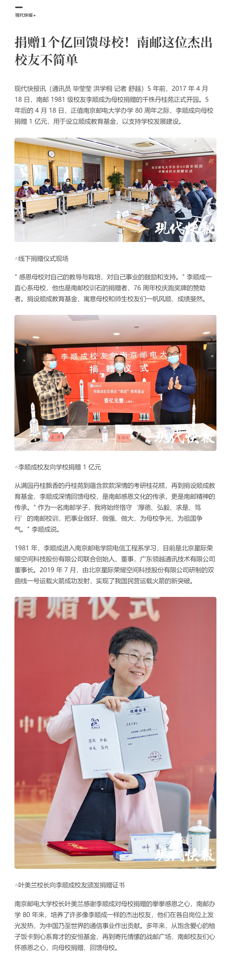 | 【現代快報全媒體】捐贈1個億回饋母校!南郵這位杰出校友不簡單 |