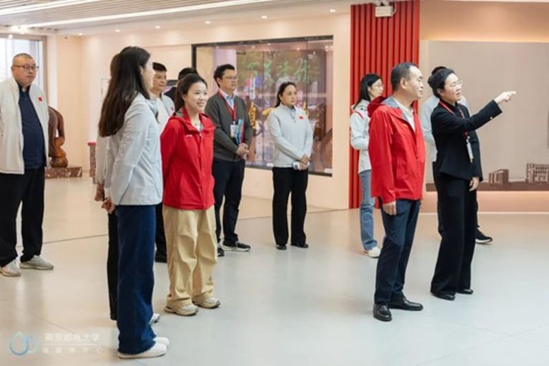 “2025年中國國家隊公益服務大行動”走進南郵 國家體育總局體育器材裝備中心主任、黨委書記、中國奧委會市場開發部主任于建勇,江蘇省教育廳二級巡視員、省學校體育教學指導委員會主任李金泉,江蘇省教育廳體育衛生與藝術教育處處長、省學校體育教學指導委員會副主任兼秘書長李海寧,江蘇省體育局體育器材裝備中心副主任戴廠華,南京郵電大學黨委書記郭宇鋒,黨委常委、副校長謝平等出席本次活動。 在啟動儀式開始前,出席活動的領導嘉賓與楊倩、張雨霏、王賜月三位奧運冠軍共同參觀了南郵校史館。在講解員的引導下,借由珍貴的歷史照片、實物展品與多媒體展示,大家深入了解南郵八十余年的辦學歷史、學科特色以及在信息通信領域取得的突出成就。