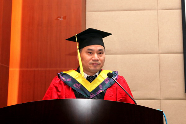 NJUPT President Professor Yang Zhen delivered the speech. He extended heartfelt congratulations, on behalf of the university, to all the graduate students who have satisfactorily completed their studies and been conferred Master’s degree. He pointed out that cultivating full-time international students was a significant breakthrough in our attempt to be in line with the internationalization, that the successful graduation of the students should owe to continuous efforts paid by everyone in NJUPT. Next Professor Yang congratulated students on their growth and success achieved in the university. During those 2 years, he addressed, that they had completely integrated into college life here and became a real NJUPTER, and graduates would change from students in NJUPT to alumni of NJUPT. He expressed his wishes of the graduates’ bearing in mind the school motto morality, persistence, practicality and sincerity wherever they are and becoming the synonym of NJUPT’s internationalization as well as the envoy of international cultural exchange, who devote themselves to getting more and more people know about China and NJUPT.