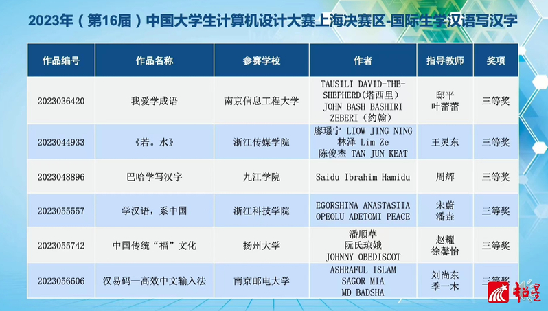 On July 20, the results of 2023 (16th) Chinese Collegiate Computing Competition Shanghai Final and international students' category Learn Chinese, Write Chinese characters national competition were announced. The Team Meng composed of three NJUPT international students Aminul, Shawon, and Atia (Bangladeshi) won the second prize of the national finals for the project Guwen-UnilM: Machine Translation of Ancient Modern Chinese Based on Pre-trained Model. The Dream in Meng Team composed of another three international students Ashraful, Sagor, and Badsha (Bangladeshi) won the third prize at the national finals for the project HAN YI MA -Efficient Chinese Input Method .